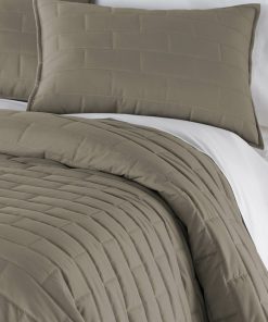 Update your bedroom with this Full/Queen Modern Brick Stitch Microfiber Reversible 3 Piece Comforter Set in Taupe. Each piece showcases a brick-inspired stitched pattern for a bold look that sets the tone for a modern ensemble. Crafted from microfiber polyester, this fade- and stain-resistant set can be tossed into the washing machine and dryer for fuss-free upkeep. Accent Pillows NOT included.