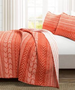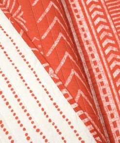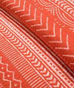 Add a modern Scandinavian style to your bedroom with this 3 Piece Full/Queen Size Scandinavian Orange White Chevron Reversible Cotton Quilt Set. The quilt has stripes and various geometric patterns. This 3 piece set includes a soft 100% cotton quilt and 2 matching pillow shams. The lightweight cotton quilt is perfect for all seasons. The reversible design gives you two stylish patterns in one set.