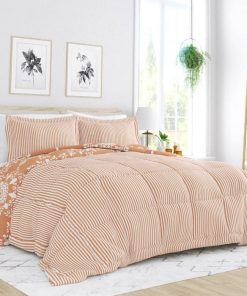 This Full/Queen Size 3 Piece Clay Reversible Daisy Medallion Striped Comforter Set features a reversible design that lets you switch up any bedroom decor whenever inspiration strikes. Full/Queen Size set includes a comforter and 2 shams, all made from a microfiber and polyester blend. The wrinkle-resistant comforter features a baffle-box design on one side for an added layer of texture, while the other showcases bright floral patterns for a boho look to compliment any space. Filed with down for a cushioned feel and the matching sham complete the look of this set. Machine washable for fuss-free upkeep.