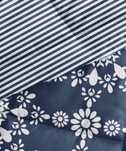 This Full/Queen Size 3 Piece Navy Reversible Daisy Medallion Striped Comforter Set features a reversible design that lets you switch up any bedroom decor whenever inspiration strikes. Full/Queen Size set includes a comforter and 2 shams, all made from a microfiber and polyester blend. The wrinkle-resistant comforter features a baffle-box design on one side for an added layer of texture, while the other showcases bright floral patterns for a boho look to compliment any space. Filed with down for a cushioned feel and the matching sham complete the look of this set. Machine washable for fuss-free upkeep.