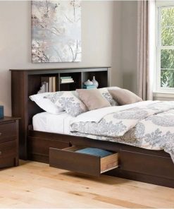 - Full/Queen size Bookcase Storage Headboard in Espresso Wood Finish