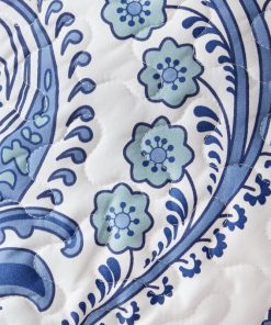 Full/Queen Size Soft Microfiber Reversible Blue/White Baroque Design Quilt Set