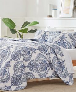 Elevate your bedroom with this versatile Full/Queen Size Soft Microfiber Reversible Blue/White Baroque Design Quilt Set. This supremely soft quilt with 2 matching shams features a classic baroque design in shades of blue to add relaxed elegance to your bedroom. Crafted of ultra-soft premium microfiber and filled with polyester polyfill, this breathable, smooth quilt is suitable for all seasons. Best of all, this stylish set can be machine washed and is fade resistant for everyday use.