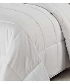 Update your bedroom with this Full/Queen Traditional Microfiber Reversible 3 Piece Comforter Set in White. This comforter set has nice double stitching overclock with piping making it elegant and luxurious. Crafted from microfiber polyester, this fade- and stain-resistant set can be tossed into the washing machine and dryer for fuss-free upkeep. The baffle box construction crafted with high-density needle stitching prevents the fiberfill from shifting, even after a wash.