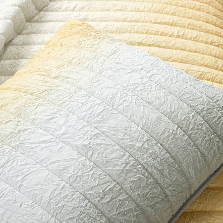 This unique Full/Queen Yellow Grey Ombre Crinkle 3 Piece Quilt Set has a cozy crinkled fabric that’s detailed with a fun quilted pattern. This three-piece set features a trendy ombre design showcasing the two colors that transition into each other.