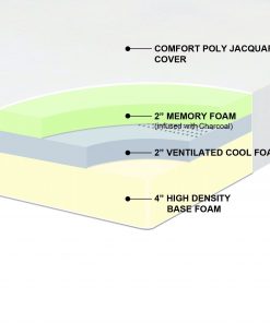 Mattress layers: 3″ memory foam, 2″ Super Soft Foam with pressure relief system and 5″ high density foam