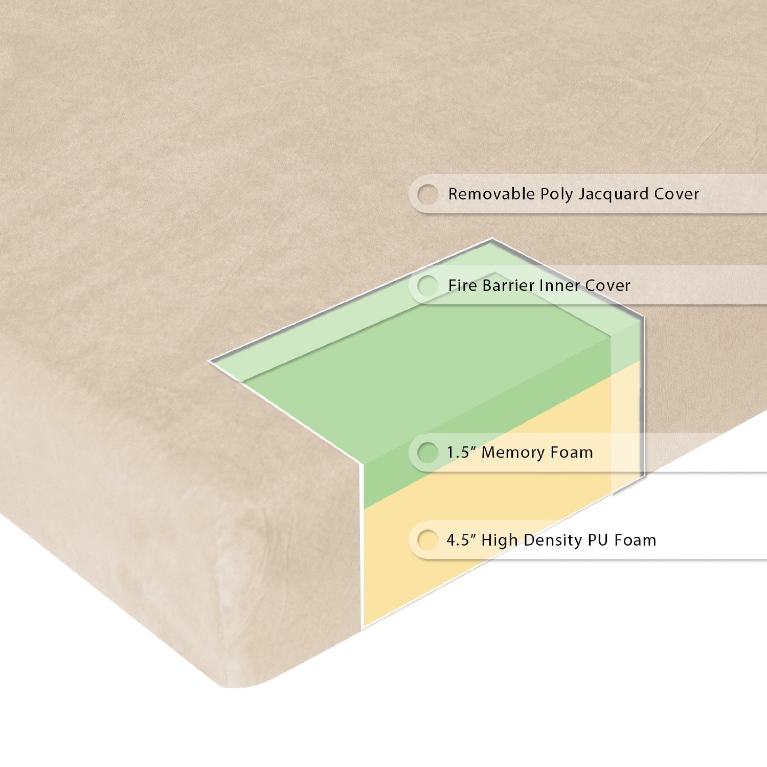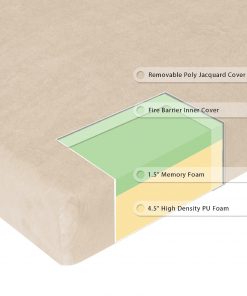 - Mattress layers include: 1.5″ premium memory foam, 4.5″ high-density foam