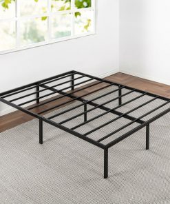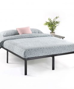 This Full size Black Metal Platform Bed Frame with Headboard Attachment Slots is a complete support system that replaces the need for the traditional box spring. It is constructed with 100% steel to provide maximum support and durability for long-lasting use. You will find that its 9 points of Contact from the mattress to the floor adds strength, stability and level support. Another feature is the 12 inches of under-bed storage to keep those needed items conveniently stored away.