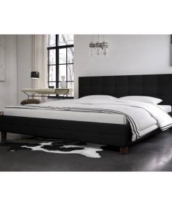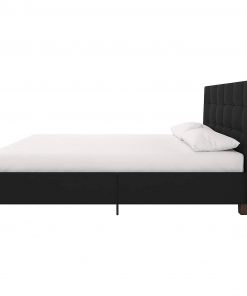 This Full size Black Padded Linen Upholstered Platform Bed with Headboard is the perfect centerpiece for your bedroom! The low profile headboard and footboard, designed with square tufted detailing give the piece a modern look and feel. Its beautiful linen upholstery and thick cushioned padding will make your room look like a luxurious and comfortable haven to sleep in. The beds clean square profile is built with multiple wooden slats for support and durability and does not require a box spring.