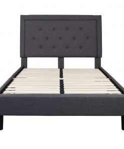- Full size Dark Grey Fabric Upholstered Platform Bed Frame with Tufted Headboard