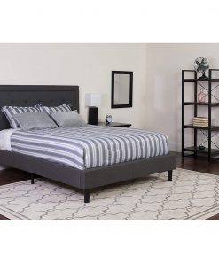 Retreat in style with this Full size Dark Grey Fabric Upholstered Platform Bed Frame with Tufted Headboard. Platform beds are designed to give your room an open concept feel and are perfect for those who don’t like high seated beds. One advantage is the soft panel headboard as well as the cushion like base. The headboard features gorgeous nail trimming and button tufted upholstery. The frame features 15 wood slats that are designed to support your mattress without the use of a box spring. Finally, a bedroom designed to give you a comforting and peaceful nights rest.
