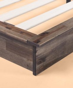 Relax in style! The Full size Farmhouse Acacia Wood Industrial Low Profile Platform Bed Frames take center stage with this industrial-style bed. Artfully crafted with 100% solid acacia wood, each piece features its own unique distinctive knots and patterns. This design makes a statement with clean lines and a striking slatted headboard with metal and brass-finished hardware. A picture of strength and durability, this Farm House design is skillfully constructed completely from solid wood, dependable steel and plywood slats for unparalleled mattress support. Its streamlined, low-profile design features molding on all four sides, and promises to pull together your bedroom beautifully. Add in its efficient packaging and under-an-hour assembly time, and this frame is guaranteed to impress you.