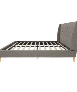 Get the royal treatment with this Full size Grey Linen Upholstered Platform Bed with Wingback Headboard. The wingback headboard is covered in elegant tufted linen, which extends all the way around the equally stunning bed base. Thanks to the unique bentwood slat system, youll enjoy superior back support with excellent pressure distribution. As well, the slats allow air to pass freely beneath your bed, keeping you cool and ensuring your mattress maintains its freshness and lasts for years to come. The four wooden legs are slanted for maximum support, with an extra two metal legs and center rail providing additional structure and comfort. No need for a box spring or foundation eitherjust add a coil or memory-foam bed mattress and luxury bedding, then settle down for a great nights sleep! The classic design with regal touches makes this bed frame the perfect addition to any bedroom or an ideal choice for a guest bed.