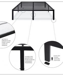 This Full size Heavy Duty Metal Platform Bed Frame – 2,000 lb Weight Capacity is the perfect solution to fit in small spaces. Ample storage under bed for linens, out-of-season clothing or other items. The solid steel slats and steel frame construction with excellent strength and durability provides more sturdy support to mattress. No box spring needed. It is shipped in a parcel and easy to set up. We have done customer research of bed frame. Customers are looking for bed frame like this – sturdy. No scratch their luxury floor. Hold mattress not to slide on bed frame. Self foldable. Looking chic it can be a perfect solution for your bed room.