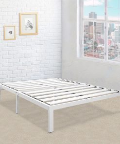 This Full size Heavy Duty Metal Platform Bed Frame in White is the perfect solution of the modern minimalists seeking sturdy and durable mattress support! featuring super strong steel slats, our steel platform bed frames are unbeatable in its strength, stability and level support. Plus, these reliable steel slats also serve to prevent mattress from sagging and enhance mattress life. Full size Heavy Duty Metal Platform Bed Frame in White also features additional legs (compared to other existing metal frames) and points of Contact from floor, giving it additional stability and support. Smartly engineered and shipped powered by our relentless innovation in product development, we are able to efficiently package our bed frame and ship it out in a box right to your door. So, all you have to do is lift a finger and click.