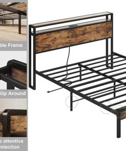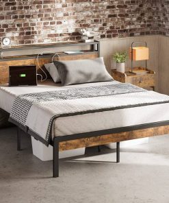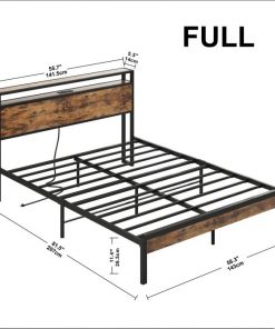 Full Size Industrial Platform Bed Frame with Storage Headboard and Power Outlets