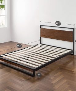 This Full size Metal Wood Platform Bed Frame with Headboard will instantly update any bedroom. With the cherry finished pine wood headboard, sleek metal structure, and wood slats, this platform bed provides great support for your memory foam, latex, or spring mattress while looking great in your bedroom. Use with or without a box spring to personalize your mattress Height, mattress sold separately.