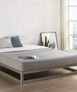 This Full size Modern Heavy Duty Low Profile Metal Platform Bed Frame features heavy duty steel construction with metal slat support for stable and comfortable support without need of traditional box spring. 9 Inch low profile modern design allows you to easily get in and out of the bed or to add extra profile with mattress thickness that you prefer. Also has rounded edges.