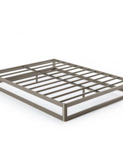 This Full size Modern Heavy Duty Low Profile Metal Platform Bed Frame features heavy duty steel construction with metal slat support for stable and comfortable support without need of traditional box spring. 9 Inch low profile modern design allows you to easily get in and out of the bed or to add extra profile with mattress thickness that you prefer. Also has rounded edges.