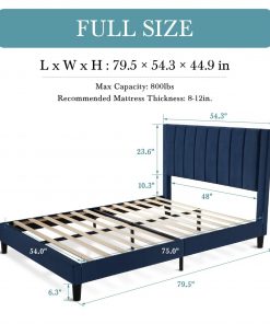 - Full size Modern Navy Blue Velvet Upholstered Platform Bed with Headboard