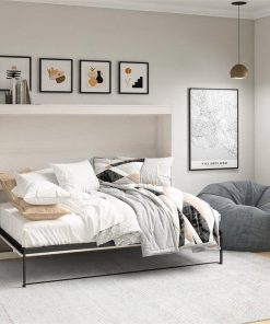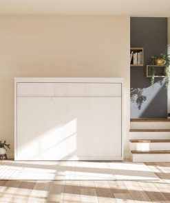 Turn your home office into a guest room with this stylish Full Size Wall Bed. Or, use this Murphy Bed in your bedroom so you can add additional space when not sleeping. This daybed style wall bed is the perfect space saving solution for your home. The compact design of the full size murphy bed allows you to easily stow away your bed by folding it against the wall whenever you need extra the floor space. Daybed layout maximizes bedroom space while in use and also requires less ceiling clearance to unfold than a typical full size murphy bed. The durable metal folding mechanism allows one person to easily fold or unfold the wall bed. Platform bed design with wooden mattress support slats eliminate the need for a box spring. This wall bed is also ideal for loft-style apartments, dorms, and living rooms that need extra sleeping spaces. Made of durable industrial grade laminated Medium Density Fiberboard and particleboard in an ivory white oak finish.