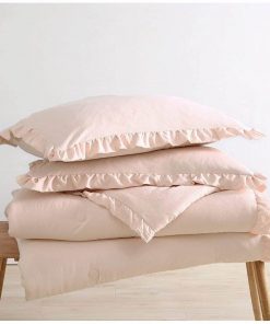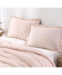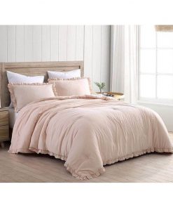 Transform your bedroom in a sophisticated and luxurious manner with this Full Size Pink Stone Washed Ruffled Edge Microfiber Comforter Set. An attractive ruffled edge trim with an elegant yet simple presentation that makes you feel right at home. Fashionably providing everyday comfort. Lightweight, high loft comforter with adequate warmth for year-round use. The comforter is made of 100% microfiber polyester, giving a super soft smooth, and cozy feel. The fabric is stone-washed which creates a natural attractive crinkled fabric effect to enhance the aesthetics of the comforter.