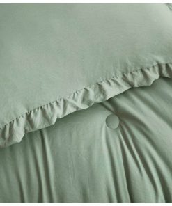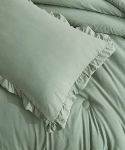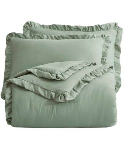 Transform your bedroom in a sophisticated and luxurious manner with this Full Size Sage Stone Washed Ruffled Edge Microfiber Comforter Set. An attractive ruffled edge trim with an elegant yet simple presentation that makes you feel right at home. Fashionably providing everyday comfort. Lightweight, high loft comforter with adequate warmth for year-round use. The comforter is made of 100% microfiber polyester, giving a super soft smooth, and cozy feel. The fabric is stone-washed which creates a natural attractive crinkled fabric effect to enhance the aesthetics of the comforter.