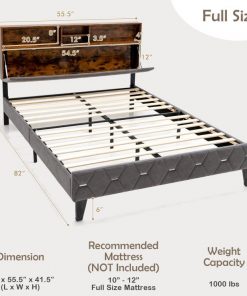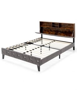 Covered with skin-friendly velvet fabric and padded with high-density sponge, this Full Size Velvet Upholstered Open/Close Storage Headboard Platform Bed provides you with ultimate comfortable and storage! Comes with a storage headboard that also features a hidden space and 4 open compartments, not only protecting your privacy but keeping items close to hand. Premium hydraulic rods allow you to open/close the headboard. Supported by 12 strong plywood slats and sturdy metal frame, this modern upholstered bed ensures 1000 lbs. max load capacity. Recommended Mattress thickness (NOT Included) is 10-12 inches and bed has 6 inch clearance from floor.