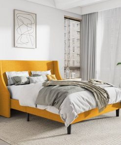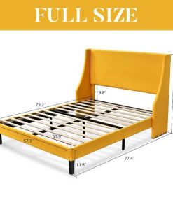 Full Size Yellow Linen Blend Upholstered Platform Bed with Wingback Headboard
