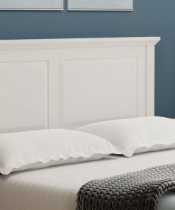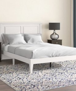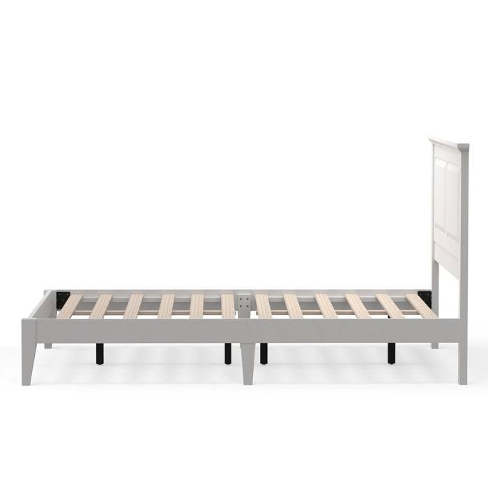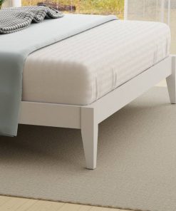 This Full Size Retro Solid Oak Wooden Platform Bed in White with prominent headboard is a must have for any bedroom! Inset panels and retro molding that adds refined elegance to any bedroom or guest room. It is crafted from solid oak, a naturally hard and durable wood. Platform bed sits on straight and slightly tapered legs that raise this bed almost 8 inches off the floor. This system of slats eliminates the need for a box spring and works best with any standard mattress (recommended 10 inches of thickness). Assembly is required.