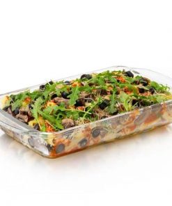The Glass 3-Piece Bakeware Oven Safe Casserole Baking Dish Set – Dishwasher Safe is pure, simple, and transparent. Three of our most popular rectangular clear glass baking pan sizes come together. Watch from all sides as your food heats evenly, and then use the handles to safely bring the attractive dish right to your table.
