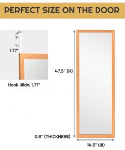 - This 47.5 x 14.5 full-length mirror provides a large field of vision, allowing you to check your makeup and outfit from head to toe before going out. The width of each hanger is 2″, suitable for most doors of normal thickness.
