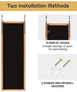 - You can either hang this full-length mirror over the door with the hooks which have three adjustable heights, or you can mount it on the wall with the included screws for the maximize space utilization without taking any floor space.