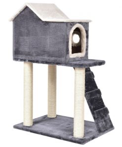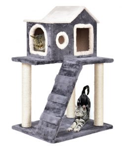 This Gray 36 Inch Tower Condo Scratching Post Ladder Cat Tree House is suitable for kittens and cats. It has a strong bearing capacity and high stability. The sisal rope which is covering the cat post, not only can prevent the cat condo shaking, but also can be used for the cat scratching post. Featuring two levels and one big room, this cat tree makes it a comfortable spot for your cat or kitten to rest and relax. Assembled in about 10 minutes. Comes with all hardware and detailed instructions.