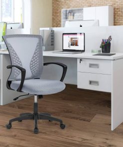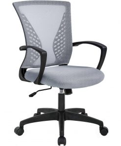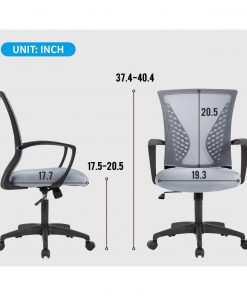 The Gray Modern Mid-Back Ergonomic Mesh Office Desk Chair with Armrest on Wheels can swivel 360 degrees. The casters are suitable for hard floors, carpet floors and more, swivel without noise and won’t scratch the floor. We provide all the tools and the detailed instructions for you. No additional tools needed for assembly. It is easy to assemble this office chair by yourself at home. The open mesh design creates a breathable, well-ventilated backrest, yet with its resilient mesh, the back molds to your back providing a more supportive seat, which helps align the spine and reduce pressure and muscle fatigue. Pneumatic controls make it easier to raise or lower the Seat. The rocking mode can relax you from heavy work, pull out the handle to start rocking and pull it in to stop. This chair can support up to 250 lbs. We have a professional customer service team, so if you have any questions, please do not hesitate to contact us. We are always with you. SPECIFICATION: Color: Grey Material: Mesh Adjustable Seat height: 17.5-20.5 Maximum Weight Capacity: 250 LBS Product Details: Ergonomic backrest with lumbar support breathable padded seat 360 degrees rotation & smooth-rolling casters Height adjustment handle Whats in the package? FDW office chair x 1 Tools for assembly x 1 User manual x 1 Multi-USE CHAIR: Office Chair/ Desk Chair / Computer Chair / Task Chair / Ergonomic Chair / Swivel Chair Notes: We strongly recommend reading the user manual before assembly. Assemble tools are included.”