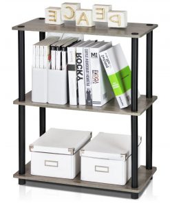 • Gray Oak and Black Finish 3-Tier Bookcase