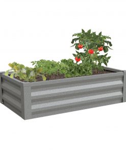 Assembled in minutes and built to last! Build an impressive victory garden with the Gray Powder Coated Metal Raised Garden Bed Planter Made In USA 24″ W x 48″ L x 10″ H. This sturdy planter allows you to easily build & yield a successful garden without tools. The sidewalls slide into the corner piece and simply lock into place using a keyhole locking mechanism. This garden bed is made out of pre-galvanized powder-coated steel making it rust resistant and allowing it to last. Set the open bottomed frame on any level outdoor space, Add soil, plants, seeds, and begin growing the garden of your dreams!