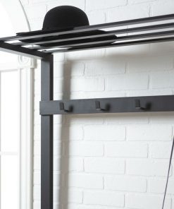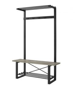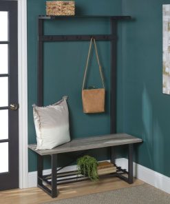 This Hall Tree has never looked so chic. Scarves, coats, and bags all find a home on the multiple hooks available. The lower shelf is perfect for shoes and the space overhead will accept your hats with gratitude. The contemporary color with a sturdy metal frame will surely complement your design aesthetic while providing a completed look in your home. Featuring an urban industrial style to add to your entryway, hallway, or mudroom. Creates added storage space to anywhere in your home with its compact and tall design. Ships ready-to-assemble with step-by-step instructions.