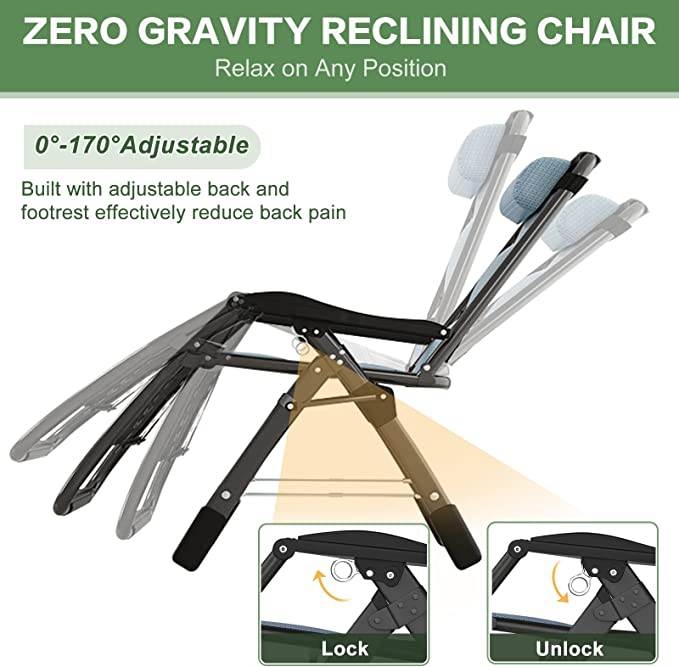 Get summer ready with this Fully Assembled Padded Folding Zero Gravity Patio Recliner w/ Cup Holder. This outdoor recliner has an adjustable design that can be adjusted from 90º to 170º effortlessly. This practical feature helps you select the optimal angle that brings you to a comfortable, relaxing position. Simply push the clip to unlock the position, and pull the clip back to secure it at your desired position. With cutton pad — The soft cushion adds extra comfort, suit for cold days or air condition room; Without padding — Suitable for summer time. You can remove the soft cushion from outdoor patio reclining chair to promote better airflow during hot summer days. This folding lawn chair can be fold and unfold in seconds. The camping lounge chair is easy transportation and storage, you can easy to bring it by car. Perfect for indoor and outdoor, suitable for patio, lawn, garden, yard, balcony, poolside, beach and office.