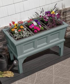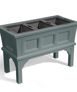 Grow big or go home! Update your homes curb appeal with this stylish Indoor/Outdoor Green Raised Plastic Planter Box w/ 3 Removeable Trays. The transitional style of this garden planter will become a beautiful backdrop to plants, flowers, herbs, or vegetables for years to come. 3 removable planter trays simplify planting and arrangement of flowers and greenery. Removable trays require less soil than traditional pots, keeping the planter light and easy to move. It sits 24 inches off the ground for easy watering and plant maintenance. The resin, semi-gloss finish wont chip, splinter, fade, rust, or tarnish. The resin planter box features DIY four panel assembly that can be accomplished with a few common tools (not included). Assembled dimensions: 24 in. x 39 in. x 19.5 in.