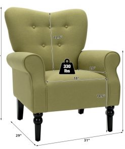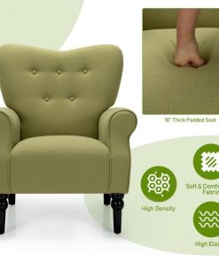 Sit back and relax in style with this Retro Tufted Polyester Accent Chair w/ Espresso Rubber Wood Frame – Green. Crafted with premium polyester fiber and high-density sponge, this modern chair is breathable, skin-friendly and wear-resistant. The accent chair allows you to sit with utmost comfort. This accent chair can well support your back, hand, waist, hip and legs. Apart from that, ergonomic backrest and armrests can perfectly fit your body curve, which is beneficial to your spine health. Its spacious seat can also offer you sufficient activity space. The accent chair is equipped with 4 espresso rubber wood legs to withstand the test of time.