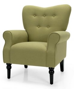 Sit back and relax in style with this Retro Tufted Polyester Accent Chair w/ Espresso Rubber Wood Frame – Green. Crafted with premium polyester fiber and high-density sponge, this modern chair is breathable, skin-friendly and wear-resistant. The accent chair allows you to sit with utmost comfort. This accent chair can well support your back, hand, waist, hip and legs. Apart from that, ergonomic backrest and armrests can perfectly fit your body curve, which is beneficial to your spine health. Its spacious seat can also offer you sufficient activity space. The accent chair is equipped with 4 espresso rubber wood legs to withstand the test of time.