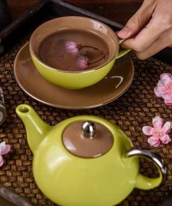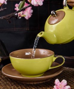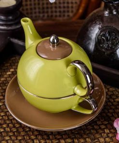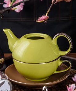 • Green Yellow Porcelain Ceramic Teapot Cup Set Dishwasher and Microwave Safe