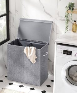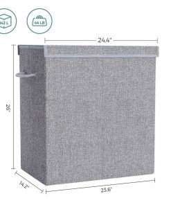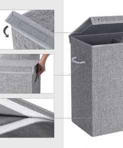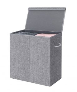 A good hamper plays an important role when it comes to laundering. Keeping your expectations in mind, we’ve put considerate thoughts into this Grey Fabric MDF 2-Compartmant Laundry Hamper Basket with Removeable Cotton Bag. Lid attached by magnetic strip and hook-and-loop fasteners, designed with extra width to keep in shape, is extremely easy and convenient to use. Removable and washable liner bag made of pure cotton, long-term durability is ensured, and you don’t need to move the hamper at all. Gray fabric cover made of breathable linen material, easily matches all kinds of home decor. Extra MDF base board makes the hamper more durable and sturdier; you can also remove the base board and fold the hamper flat when not in use. Featuring stylish appearance and selected material, this laundry hamper is a great addition to any bedroom, laundry room or bathroom. Take it home and get organized!
