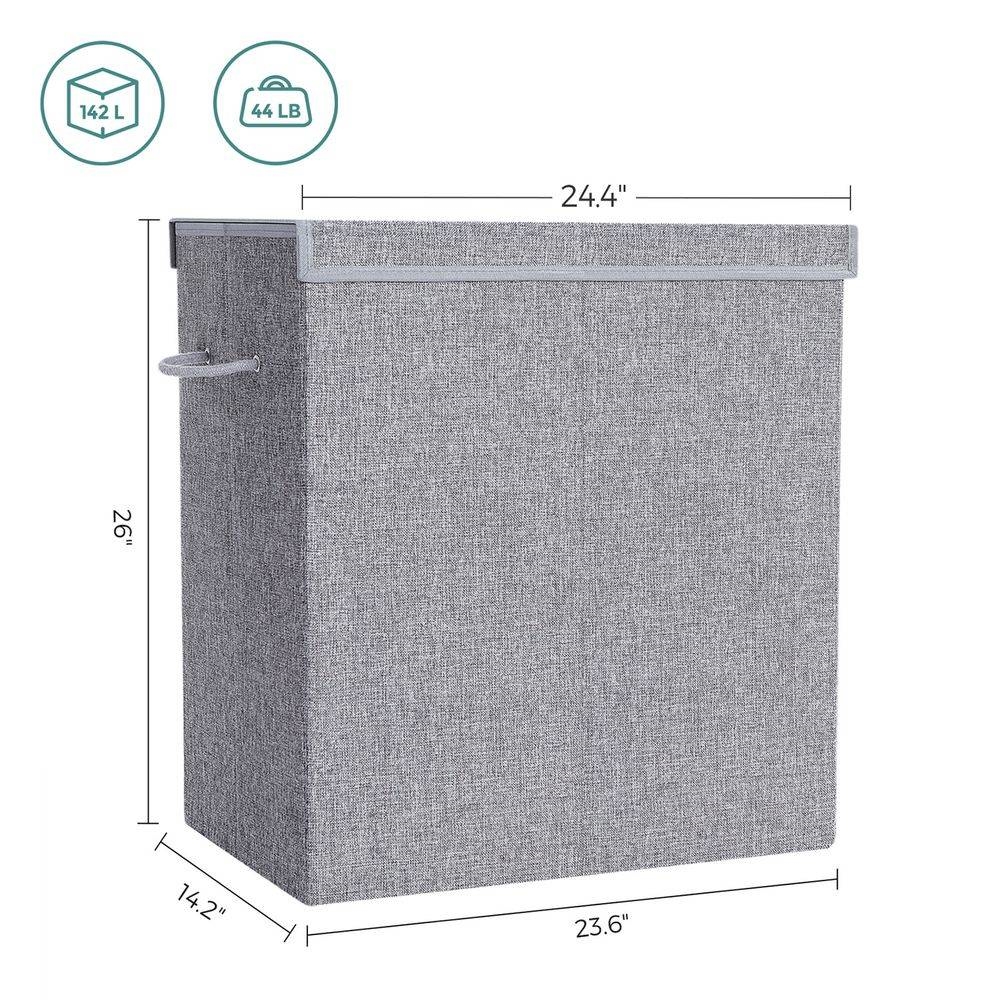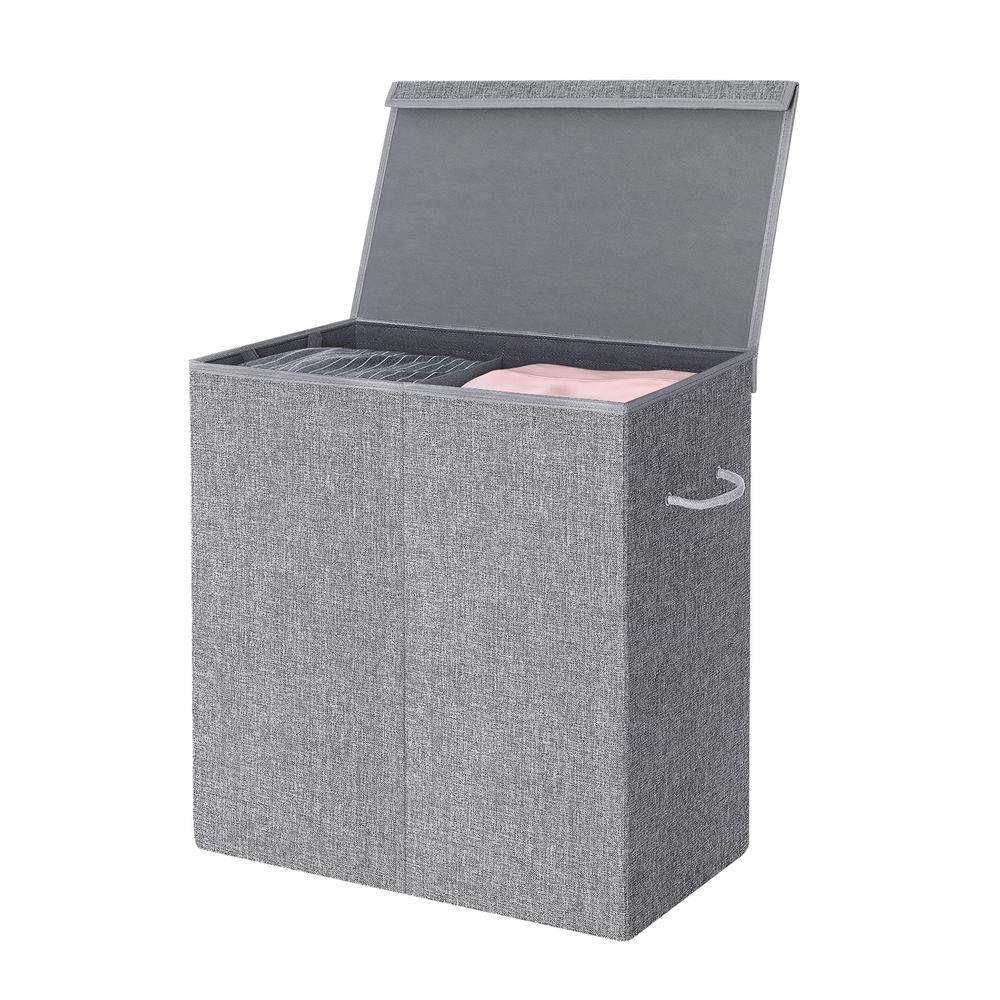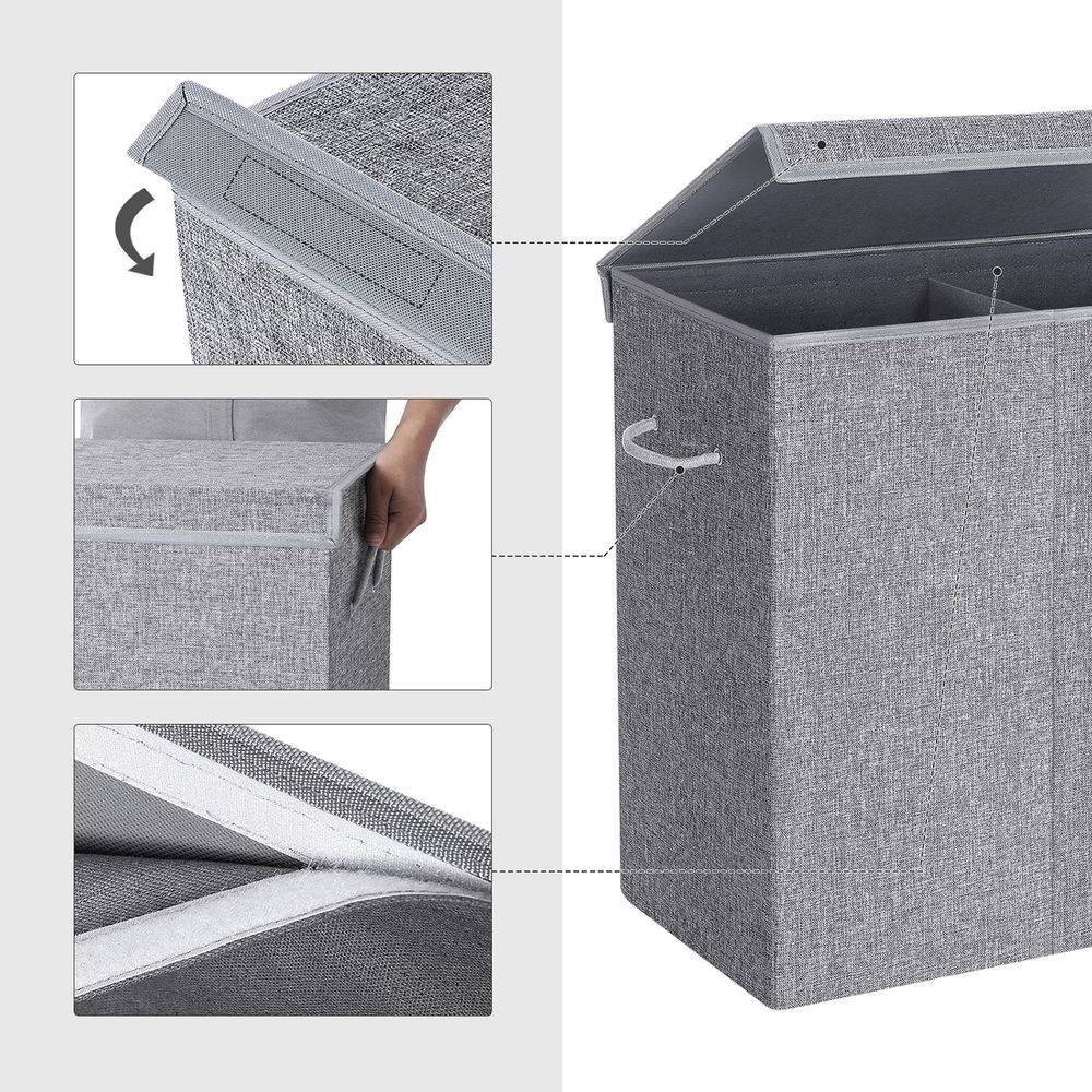 - Grey Fabric MDF 2-Compartmant Laundry Hamper Basket with Removeable Cotton Bag