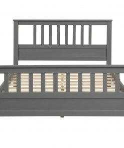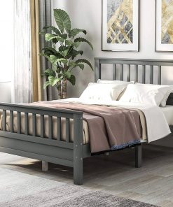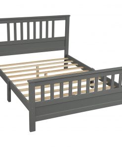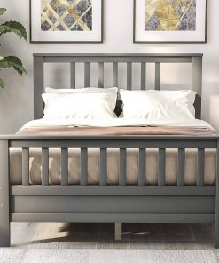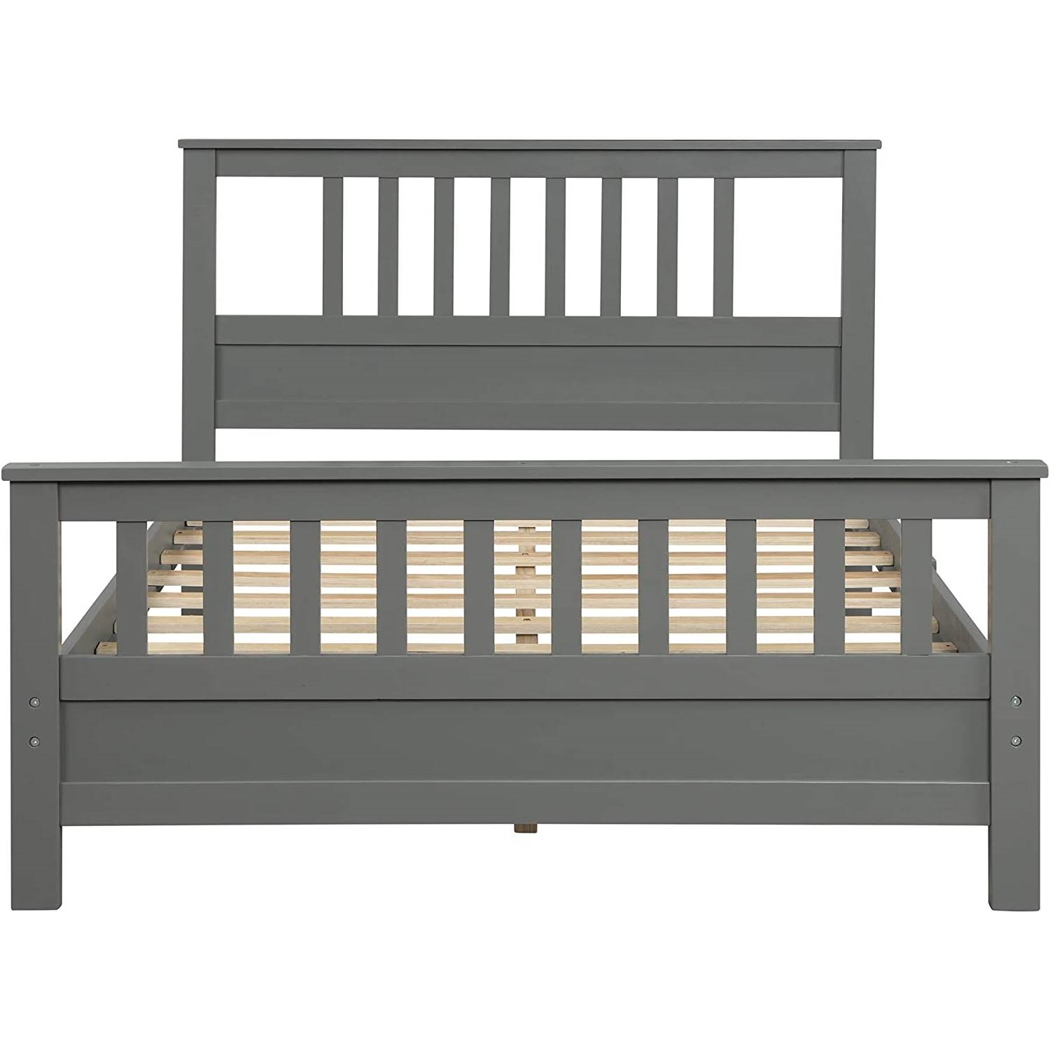 Brighten your room with the simple elegance of this Grey Pine Wood Slatted Platform Headboard Footboard Full Size Bed. This sturdy bed frame is made from pine wood and comes with 6 durable legs, 4 center legs, offering strong support for restful nights sleep. This hard wood bed has simple lines and a grey tone finish that looks clean and elegant in any bedroom.