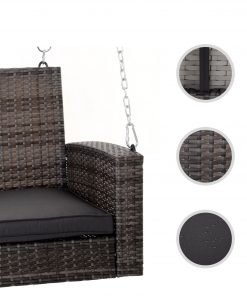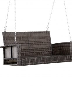 This Grey Tones Wicker Porch Swing 7ft Hanging Chain with Dark Grey Padded Cushion has so much Southern charm it practically welcomes your guests and brings out a pitcher of sweet tea for you. Its generous size with curved armrests, a high back rest with super padded charcoal cushion, makes this classic 2 person porch swing a great backyard or porch addition.