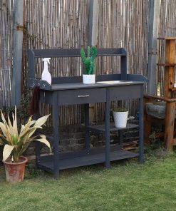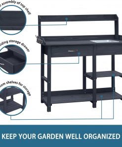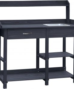 - Grey Wood Outdoor Garden Potting Bench Storage Shelf with Removeable Sink