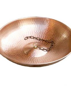 Pure Copper hammered 18-inch Anchoring basin is a great addition to your rain chain. Attach this elegant, hammered copper bowl to the end of your rain chain (not included) and allow it to fill up during the next rain. Then you can use the water to give to your favorite plant. Add some rocks or pebbles for extra weight to keep the basin in place.