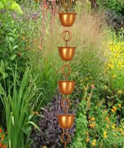 This Hammered Copper Cups 8.5-Feet Rain Chain Rain Gutter Downspout Alternative would be a great addition to your home. It has a hammered cup rain chain directs the flow of water to the ground where it can be conserved.